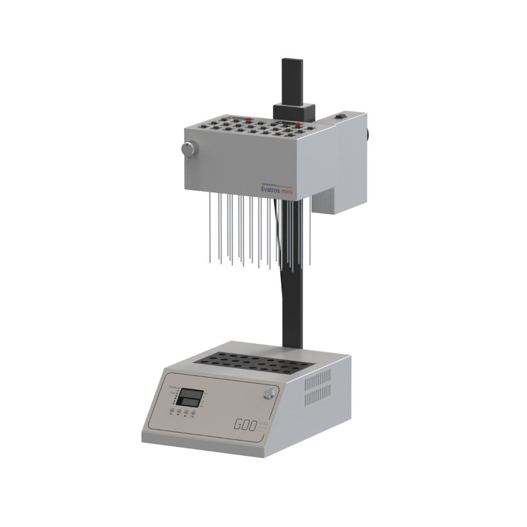 Evatros mini, davlumbaz içine monte edilebilen gaz üflemeli bir solvent buharlaştırıcıdır. 24 adede kadar numune konsantre edilebilir ve her 24 nozul, açma/kapama düğmesi aracılığıyla bağımsız olarak kullanılabilir. Hız kontrolörü ayrıca genel gaz akış hızını da kontrol eder.